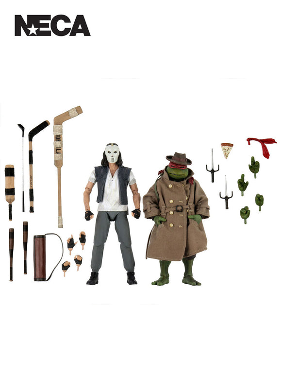 - One poseable, highly articulated figurine of Casey Jones in his trademark hockey mask and one figurine of TMNT Raphael