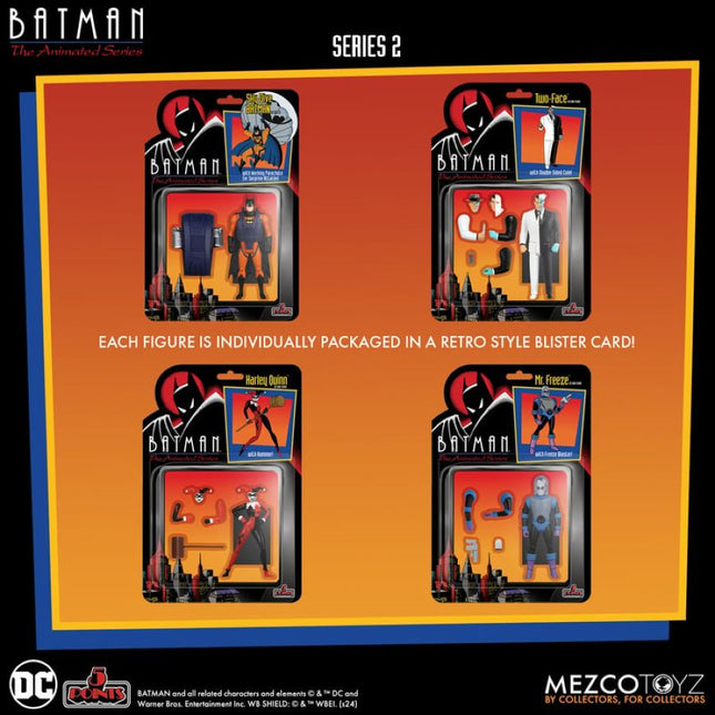 Inspired by the iconic 90s animated series, 5 Points Batman: The Animated Series - Series 2 Set features Sky Dive Batman, who takes to the skies with his parachute for surprise attacks, plus a lineup of classic villains, complete with interchangeable heads, arms, and accessories.
